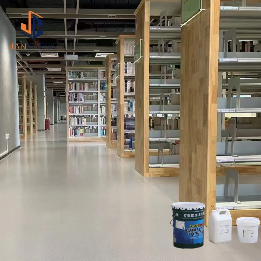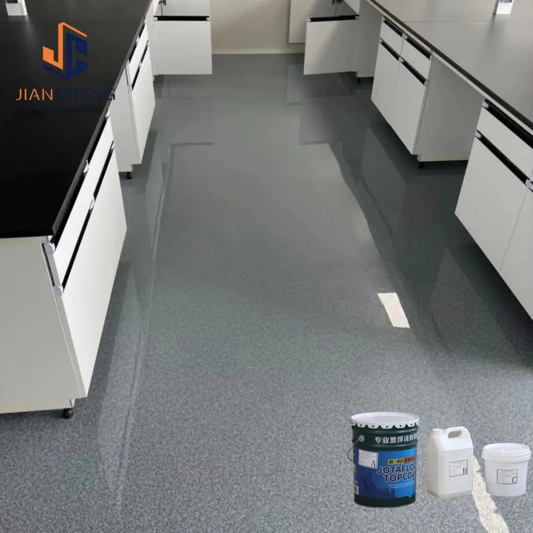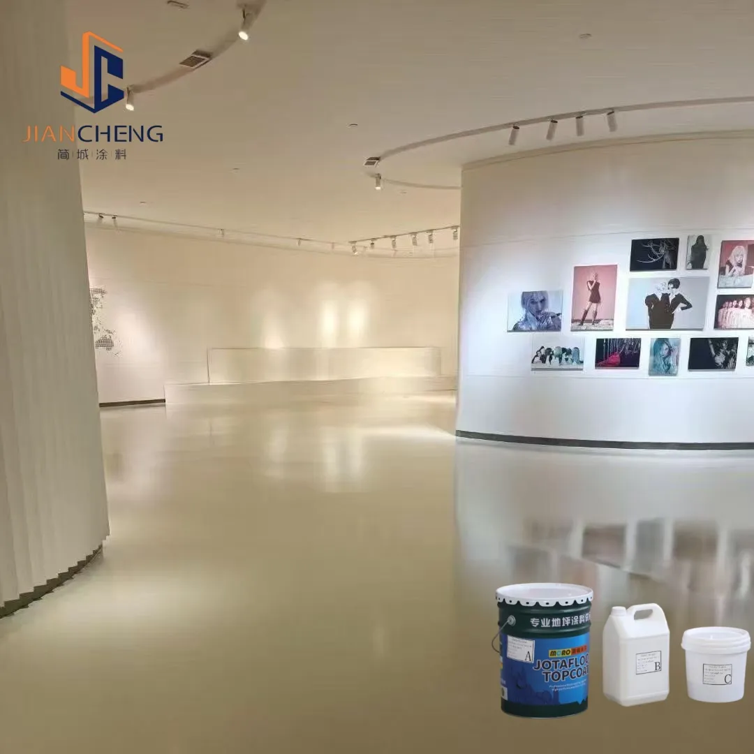 Jiancheng customized epoxy resin color sand self-leveling, is a floor decorative paint with concrete or ceramic tile as the base layer. The automatic leveling performance is very good, with bright and semi-matte effects to choose from, and the semi-matte hardness can reach up to 6H.